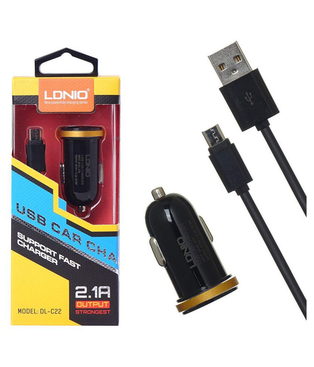 شارژر فندکی 2 پورت LDNIO الدینیو DL-C22 با کابل میکرو یو اس بی
