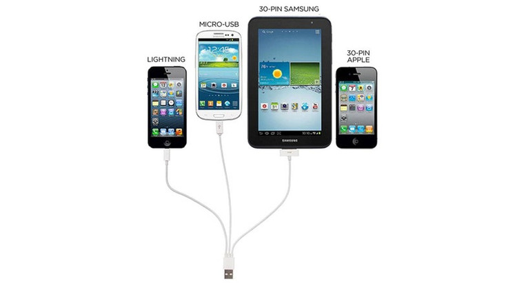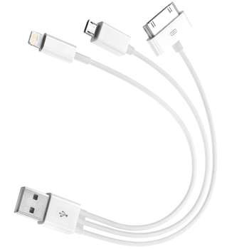 کابل سه شاخه کوتاه USB به microUSB، لایتنینگ و 30-پین مدل Three in One به طول 20 سانتی متر