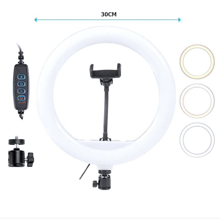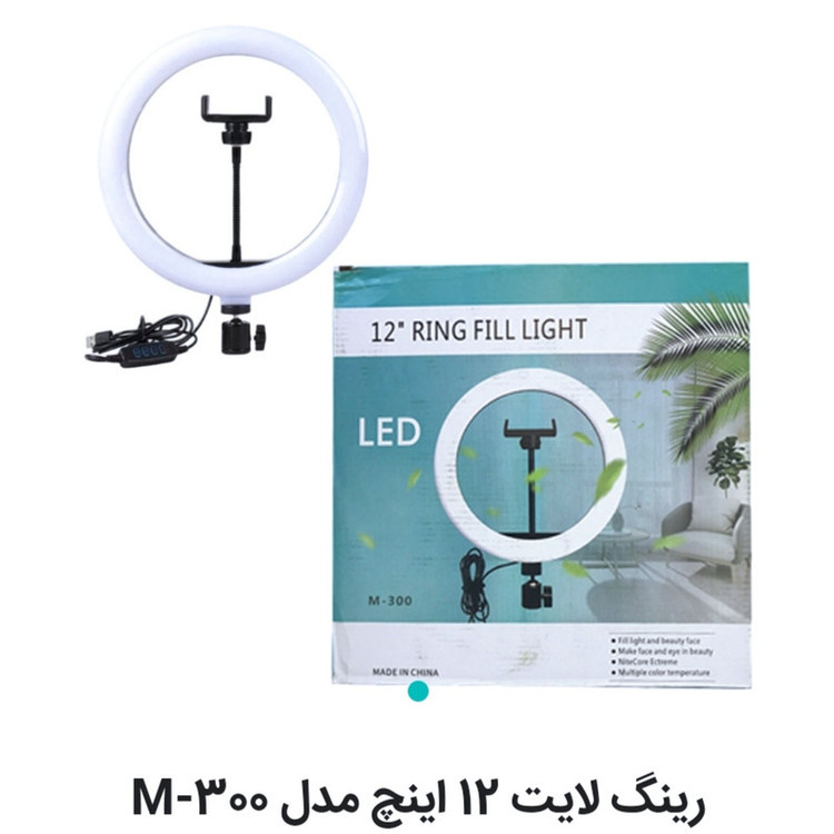 این رینگ لایت وسیله تخصصی عکاسی و فیلم برداری است که با فراهم نمودن نور مناسب در سه بازه گرم،سرد و خنثی به فیلم بردار یا عکاس اجازه مانور بیشتری میدهد و سایه ها را پنهان میکند.علاوه بر سه حالت نور دهی که گفته شد ، در هر حالت نور دهی امکان تنظیم شدت نور برای شما فراهم است و میتوانید دقیقا به نور مناسبی که در محیط نیاز دارید برسید.امکان چرخش 360 درجه در رینگ لایت و امکان استفاده از موبایل با استفاده از پایه داخلی رینگ و همینطور استفاده مستقیم از دوربین بر روی حلقه نور فراهم است.قطر خارجی رینگ لایت 30 سانتی متر است و ویژگی دیگر این رینگ لایت سه پایه ای است که به همراه دارد و تا ارتفاع بیش از سه متر بلند میشود.این رینگ لایت به همراه سه پایه در بسته بندی فوم پیچ شده جهت جلوگیری از هر گونه ورود ضربه ارسال میگردد.مدل این رینگ لایت M-300 میباشد و در بسته بندی های موجود در عکس قرار دارد. این رینگ لایت مناسب: تولید کنندگان محتوا،سازنده های کلیپ معرفی محصول،عکاسان،فیلم برداران،آرایشگاه های زنانه و مردانه،مزون ها و ... قابل استفاده است.