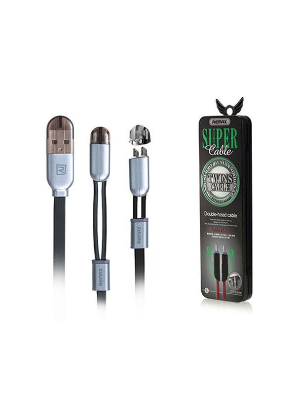 کابل شارژ دوکاره ریمکس مدل Twins RC-025t با رابط میکرو یو اس بی و لایتنینگ