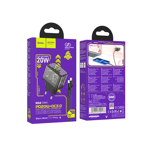 شارژر دیواری 20 وات هوکو Type-c to iphone مدل N34 PD